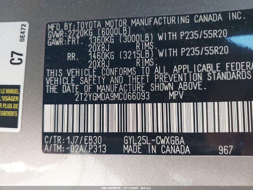 Колір СрібнийЦиліндри 6Привід Повний привідVIN 2T2YGMDA9MC066093Стан Заводиться та їде (перевірено)Ушкодження Задня права