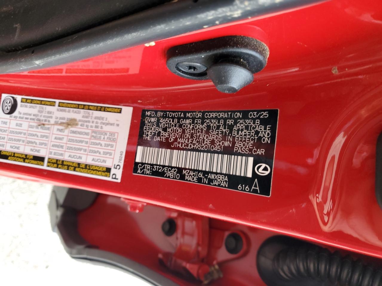 2025 LEXUS UX - JTHUCJDH9S2010451, колір - Червоний, 2.0, Гібрид, Повний привід із США