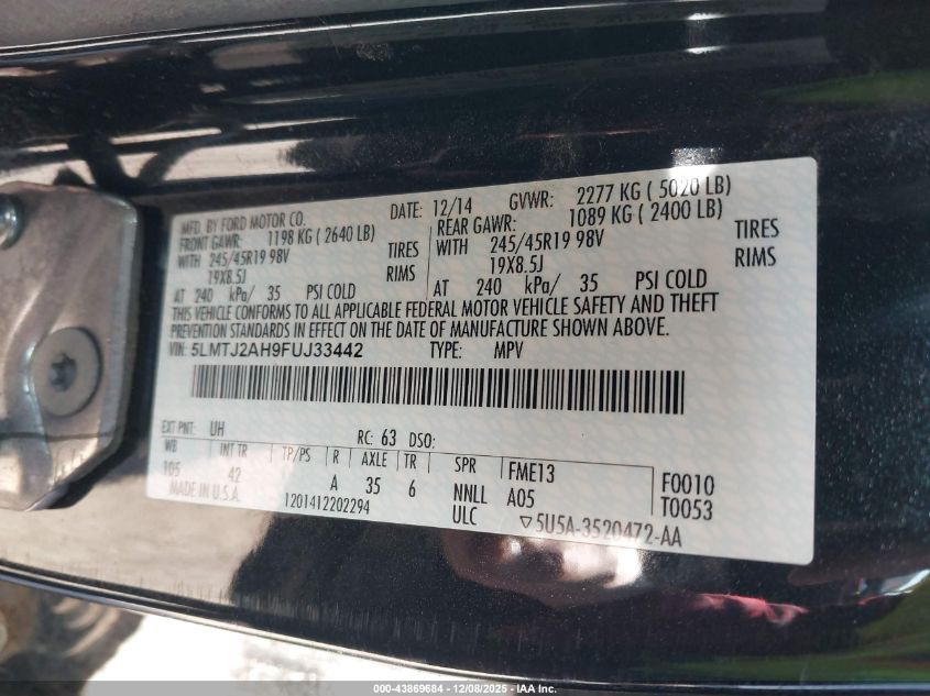 2015 LINCOLN MKC - 5LMTJ2AH9FUJ33442, колір - Чорний, 2.3, Бензин, Повний привід із США
