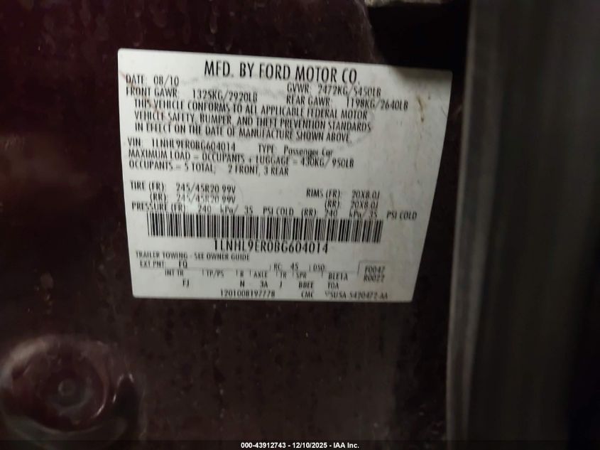 2011 LINCOLN MKS - 1LNHL9ER0BG604014, колір - Бургундія, 3.7, Бензин, Повний привід із США