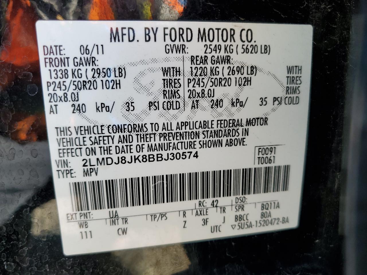 Колір ЧорнийЦиліндри 6Привід Повний привідVIN 2LMDJ8JK8BBJ30574Стан Заводиться та їде (перевірено)Ушкодження Передня або задняДата аукціона 2025-10-08
