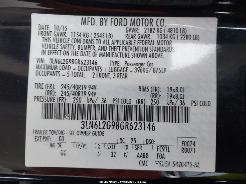 2016 LINCOLN MKZ - 3LN6L2G98GR623146, колір - Чорний, 2.0, Бензин, Передній привід із США