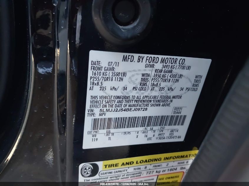 2011 LINCOLN NAVIGATOR - 5LMJJ2J54BEJ09728, колір - Чорний, 5.4, Бензин, Повний привід із США