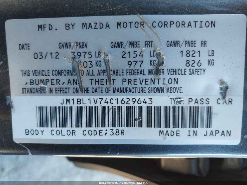 Колір СірийЦиліндри 4Привід Передній привідVIN JM1BL1V74C1629643Стан СтаціонарноУшкодження Дах