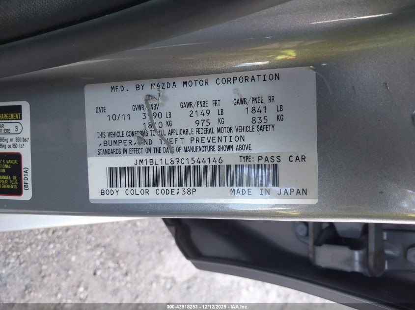 2012 MAZDA 3 - JM1BL1L89C1544146, колір - Срібний, 2.0, Бензин, Передній привід із США