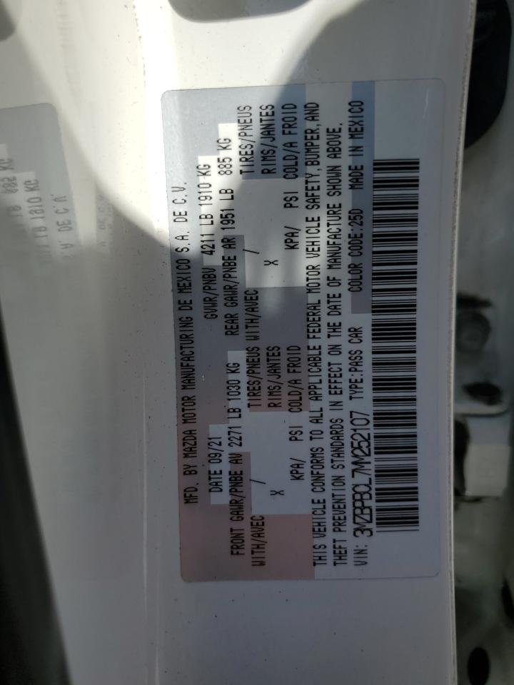 2021 MAZDA 3 - 3MZBPBCL7MM252107, колір - Білий, 2.5, Бензин, Повний привід із США