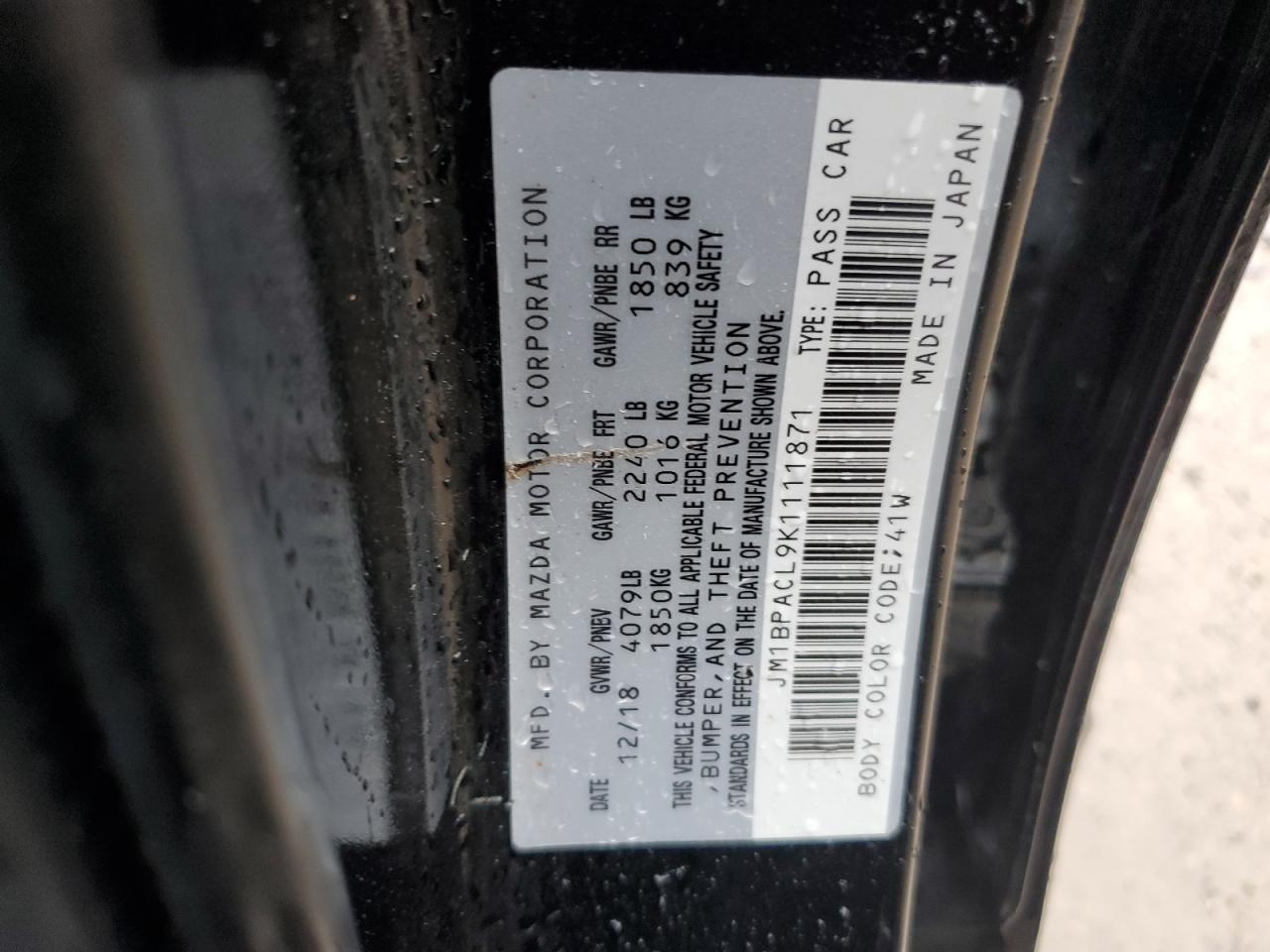 Колір ЧорнийЦиліндри 4VIN JM1BPACL9K1111871Стан ЗаводитьсяУшкодження З боків