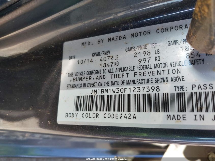 2015 MAZDA 3 - JM1BM1W30F1237398, колір - Сірий, 2.5, Бензин, Передній привід із США