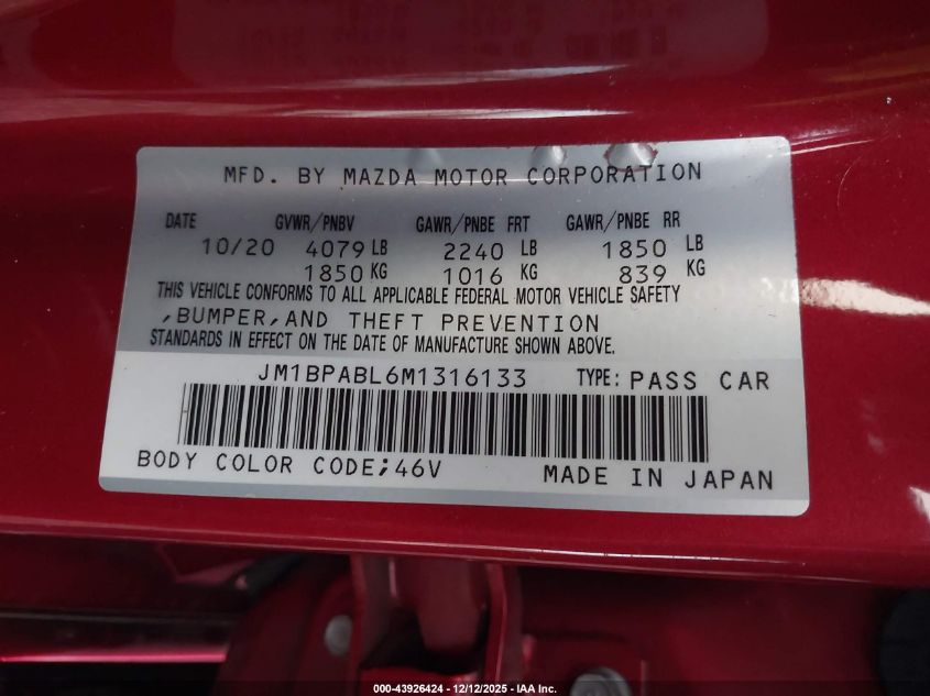 2021 MAZDA 3 - JM1BPABL6M1316133, колір - Червоний, 2.5, Бензин, Передній привід із США