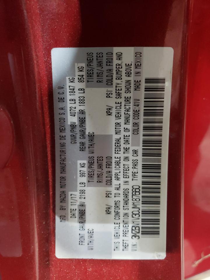 2018 MAZDA 3 - 3MZBN1V30JM187660, колір - Червоний, 2.5, Бензин, із США
