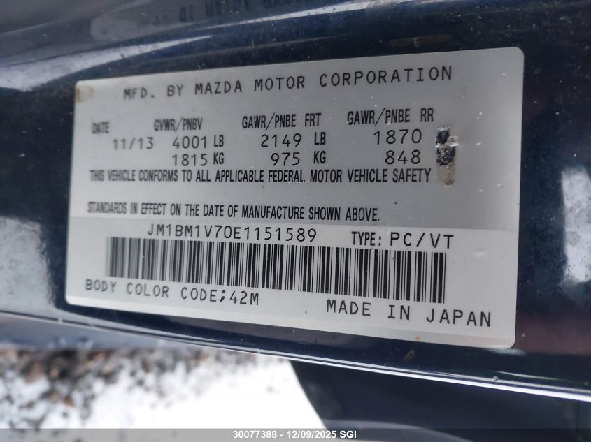 2014 MAZDA 3 - JM1BM1V70E1151589, колір - Синій, , Бензин, Передній привід із США