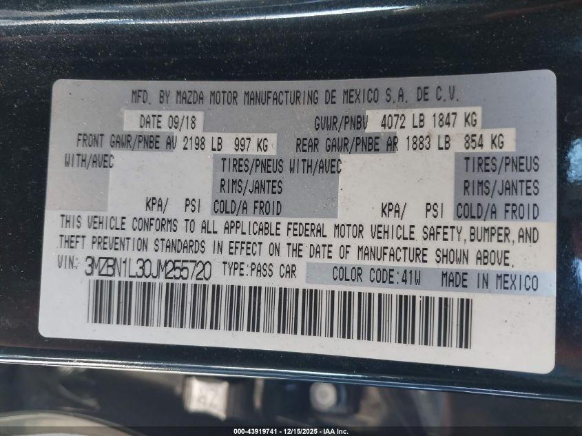 2018 MAZDA 3 - 3MZBN1L30JM255720, колір - Чорний, 2.5, Бензин, Передній привід із США