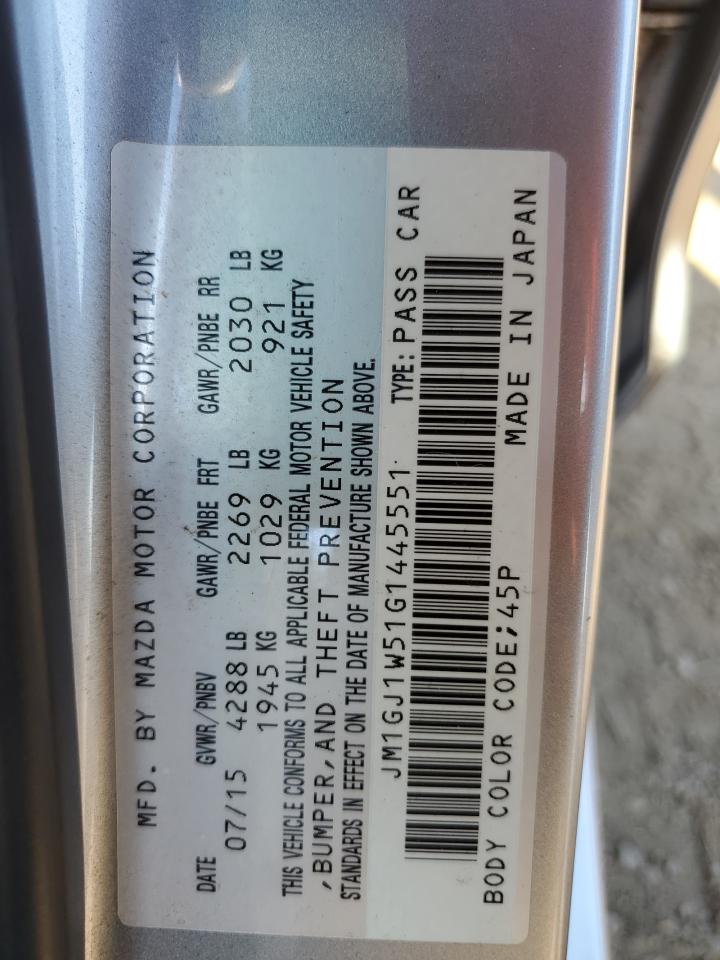 2016 MAZDA 6 - JM1GJ1W51G1445551, колір - Срібний, 2.5, Бензин, із США