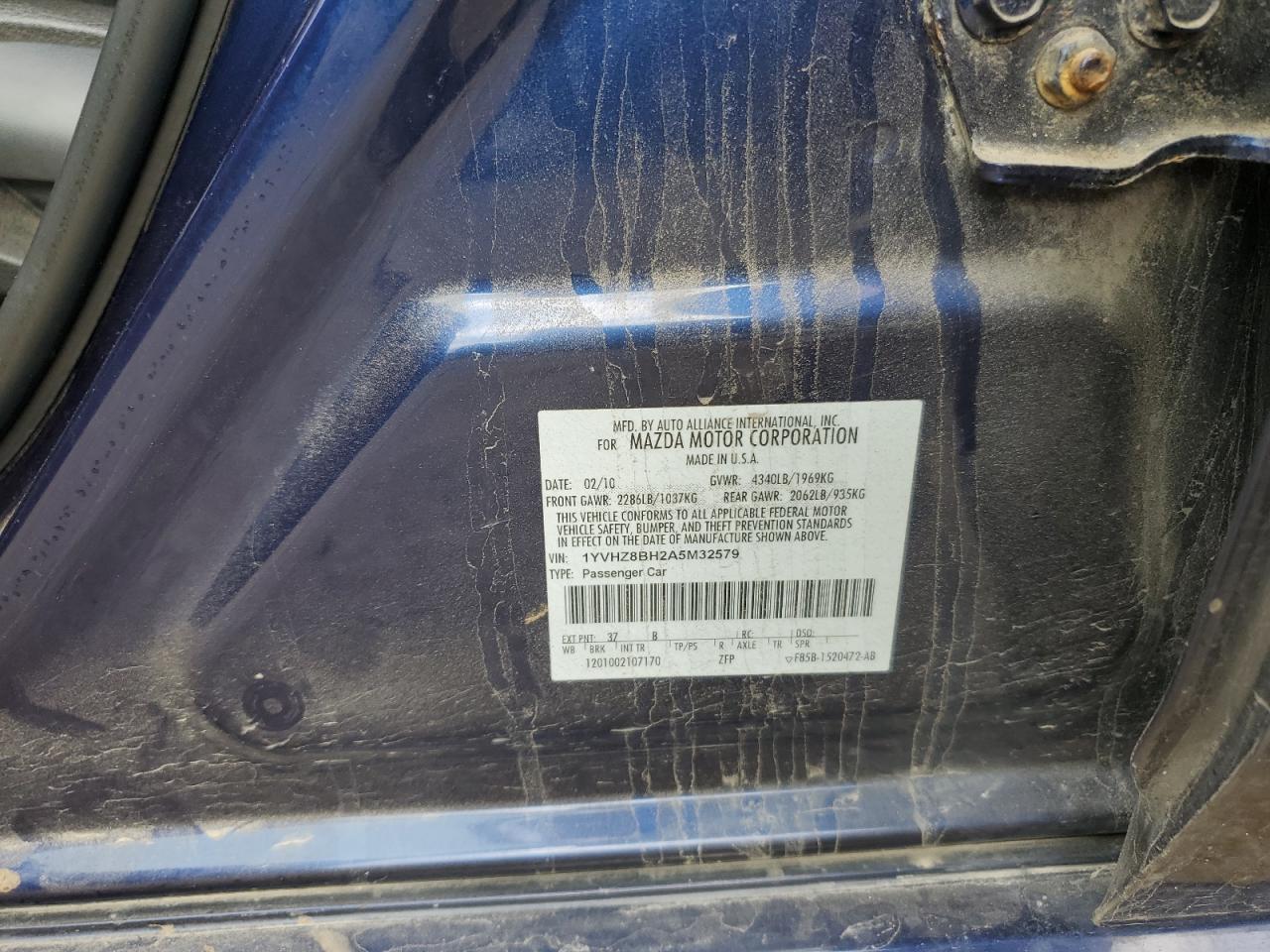 Колір СинійЦиліндри 4VIN 1YVHZ8BH2A5M32579Стан Заводиться та їде (перевірено)Ушкодження НизДата аукціона 2025-10-07