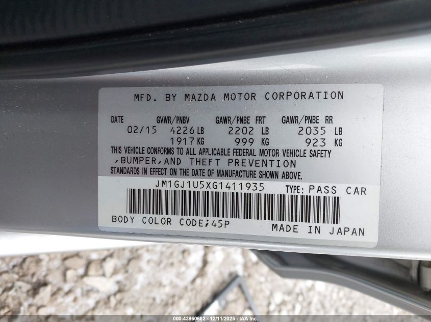 2016 MAZDA 6 - JM1GJ1U5XG1411935, колір - Срібний, 2.5, Бензин, Передній привід із США