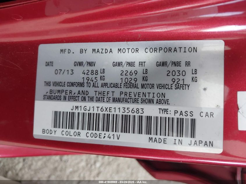 2014 MAZDA 6 - JM1GJ1T6XE1135683, колір - Червоний, 2.5, Бензин, Передній привід із США