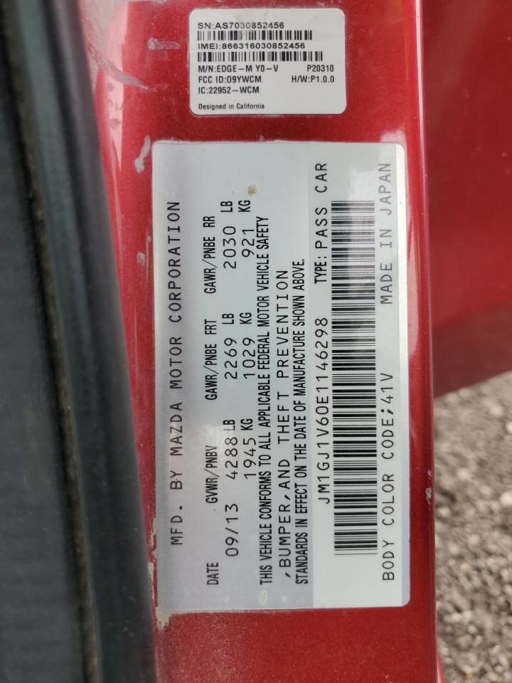 2014 MAZDA 6 - JM1GJ1V60E1146298, колір - Червоний, 2.5, Бензин, із США