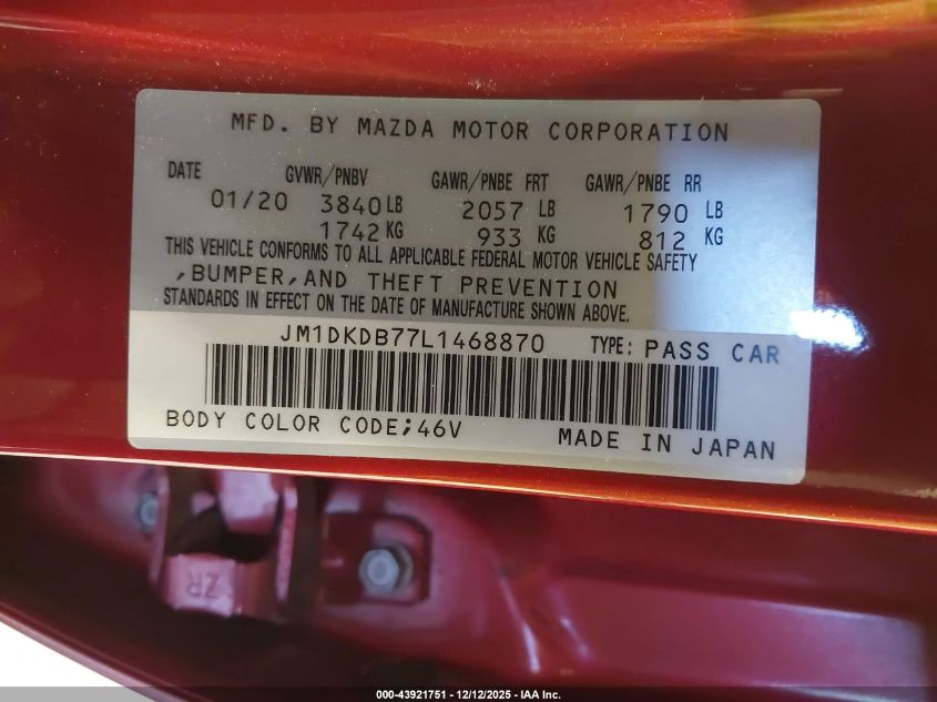 2020 MAZDA CX-3 - JM1DKDB77L1468870, колір - Червоний, 2.0, Бензин, Передній привід із США