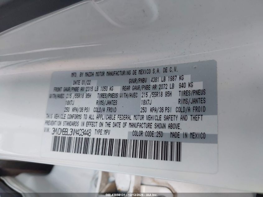 2022 MAZDA CX-30 - 3MVDMBBL3NM403448, колір - Білий, 2.5, Бензин, Повний привід із США