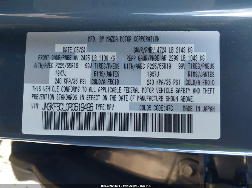 2024 MAZDA CX-5 - JM3KFBCL0R0519496, колір - Сірий, 2.5, Бензин, Повний привід із США