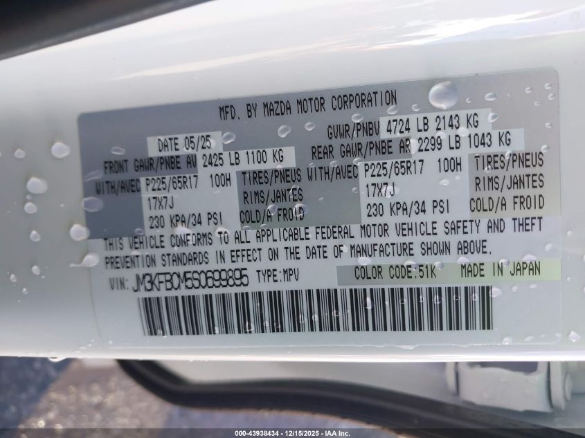 2025 MAZDA CX-5 - JM3KFBCM5S0699895, колір - Білий, 2.5, Бензин, Повний привід із США