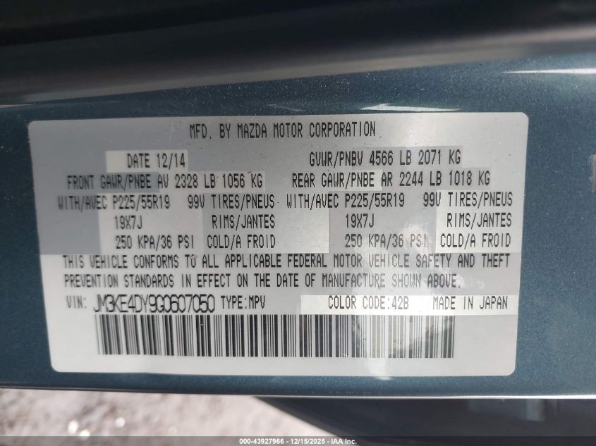 Колір СинійЦиліндри 4Привід Повний привідVIN JM3KE4DY9G0607050Стан Заводиться та їде (перевірено)Ушкодження Передня права