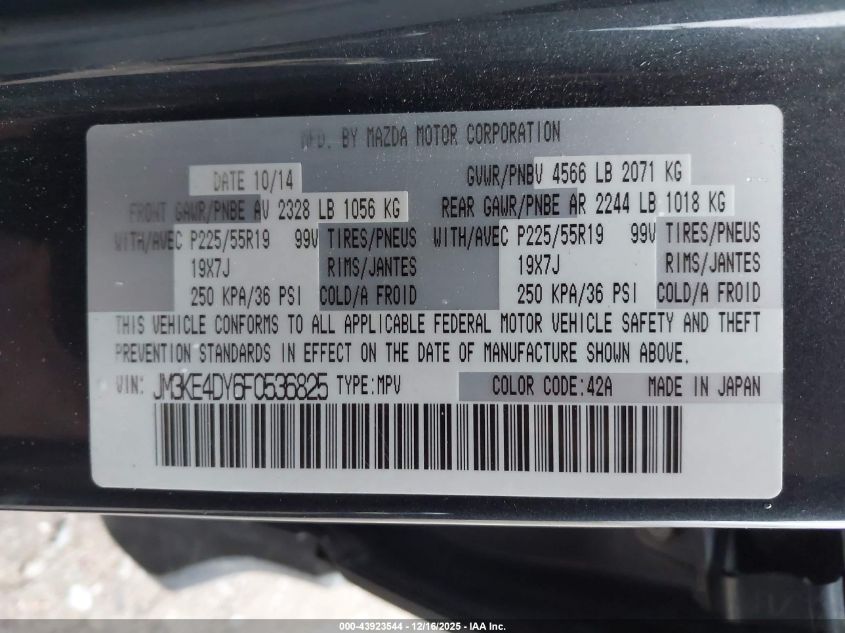 2015 MAZDA CX-5 - JM3KE4DY6F0536825, колір - , 2.5, Бензин, Повний привід із США