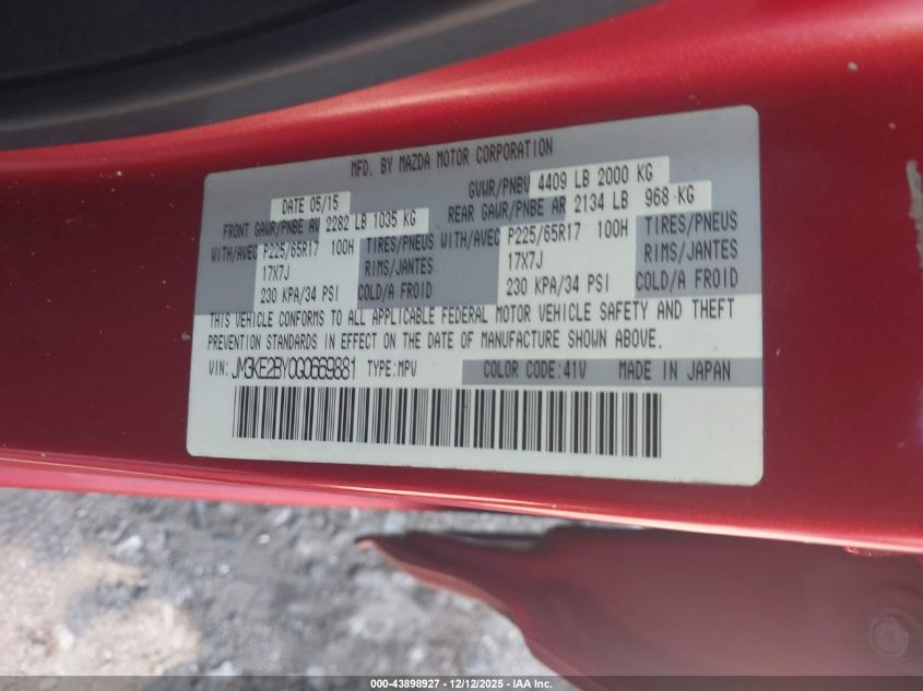 2016 MAZDA CX-5 - JM3KE2BY0G0669881, колір - Червоний, 2.5, Бензин, Передній привід із США