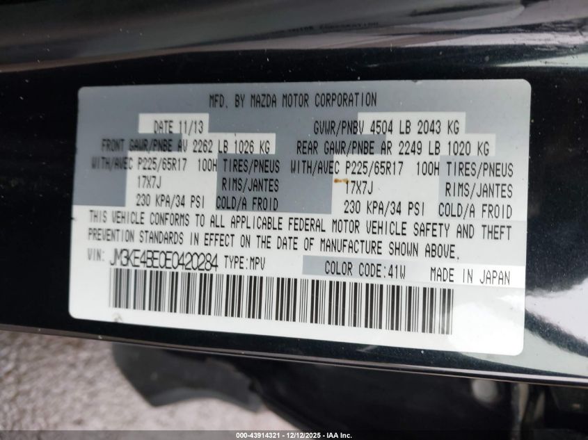 2014 MAZDA CX-5 - JM3KE4BE0E0420284, колір - Чорний, 2.0, Бензин, Повний привід із США