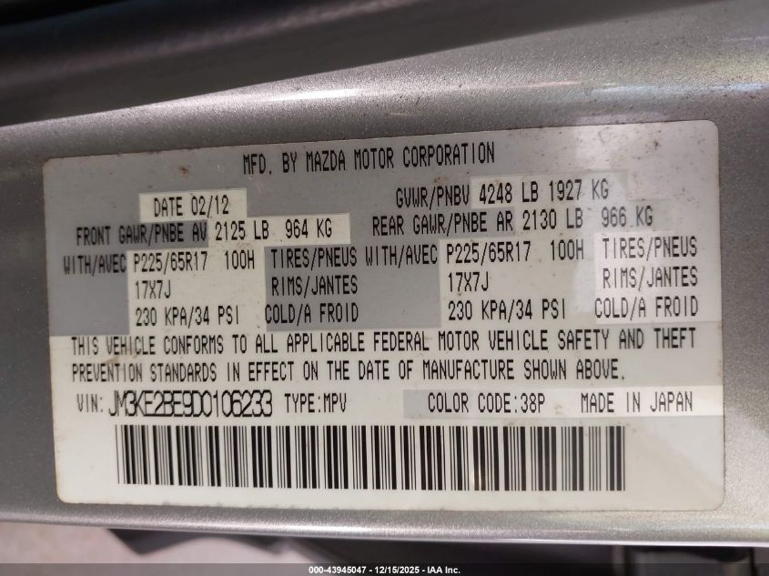 Колір СрібнийЦиліндри 4Привід Передній привідVIN JM3KE2BE9D0106233Стан НевідомоУшкодження Звичайний знос