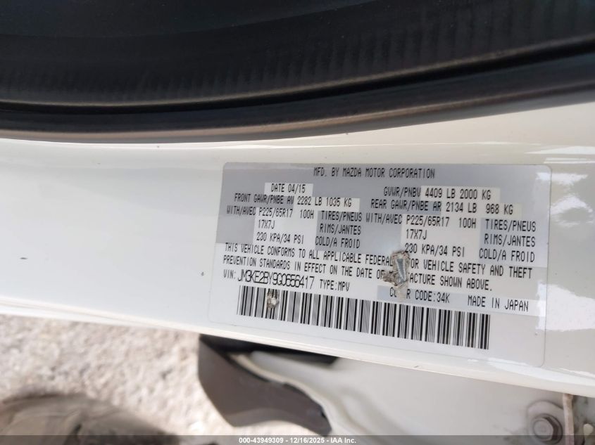 2016 MAZDA CX-5 - JM3KE2BY9G0656417, колір - , 2.5, Бензин, Передній привід із США