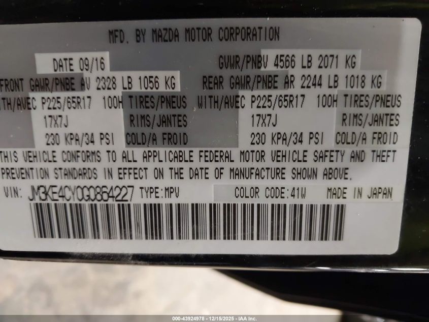 2016 MAZDA CX-5 - JM3KE4CY0G0864227, колір - , 2.5, Бензин, Повний привід із США