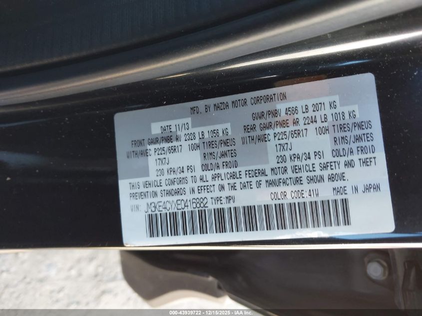 Колір ЧорнийЦиліндри 4Привід Повний привідVIN JM3KE4CYXE0416882Стан НевідомоУшкодження Звичайний знос