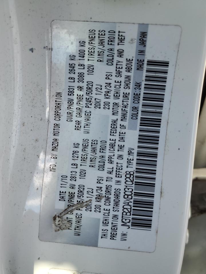 2011 MAZDA CX-9 - JM3TB2DAXB0310298, колір - Білий, 3.7, Бензин, із США