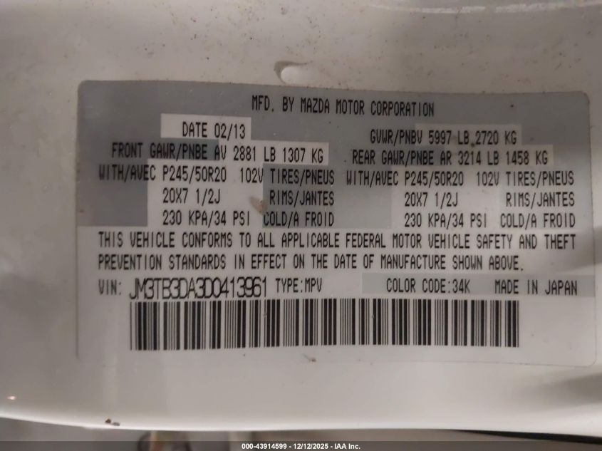 2013 MAZDA CX-9 GRAND TOURING