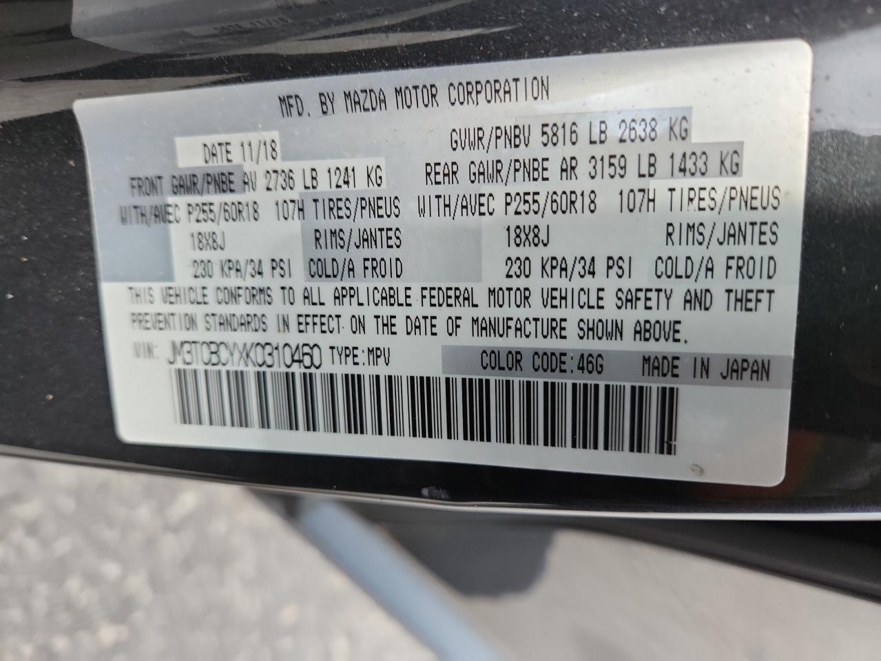 2019 MAZDA CX-9 - JM3TCBCYXK0310460, колір - Сірий, 2.5, Бензин, Повний привід із США