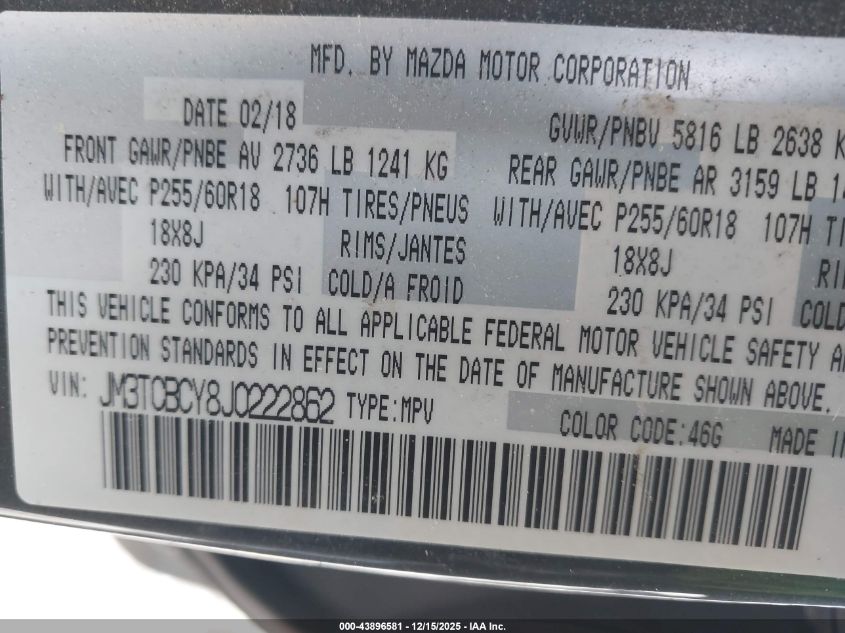 2018 MAZDA CX-9 - JM3TCBCY8J0222862, колір - Сірий, 2.5, Бензин, Повний привід із США