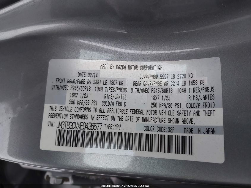 2014 MAZDA CX-9 - JM3TB3CVXE0436577, колір - Срібний, 3.7, Бензин, Повний привід із США