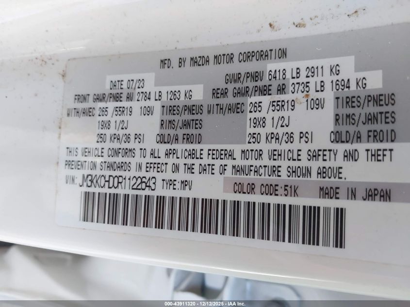 2024 MAZDA CX-90 - JM3KKCHD0R1122643, колір - Білий, 3.3, Бензин, Повний привід із США