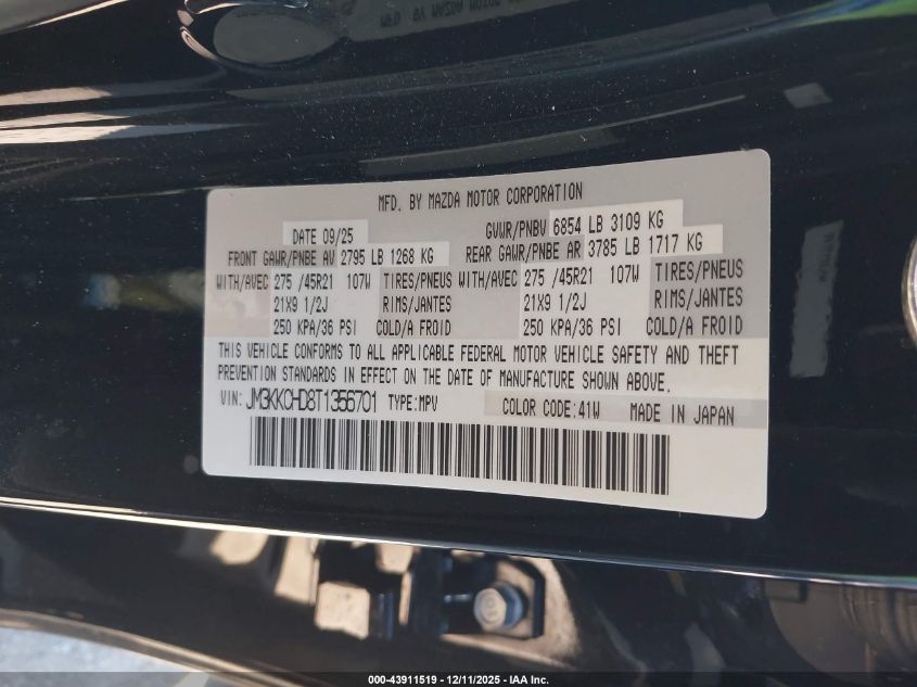 2026 MAZDA CX-90 - JM3KKCHD8T1356701, колір - Чорний, 3.3, Бензин, Повний привід із США