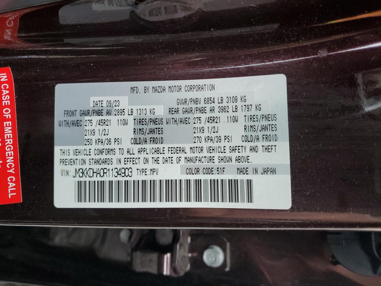 2024 MAZDA CX-90 - JM3KKDHA0R1134903, колір - Бургундія, 2.5, Гібрид, Повний привід із США