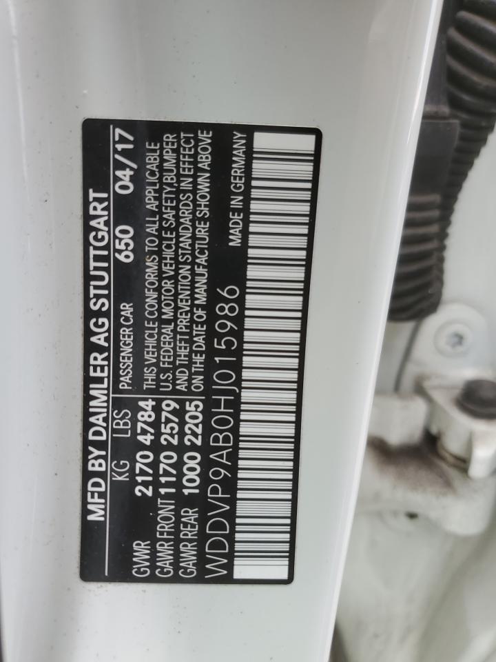 Колір БілийVIN WDDVP9AB0HJ015986Стан Заводиться та їде (перевірено)Ушкодження НезначніДата аукціона 2025-10-08