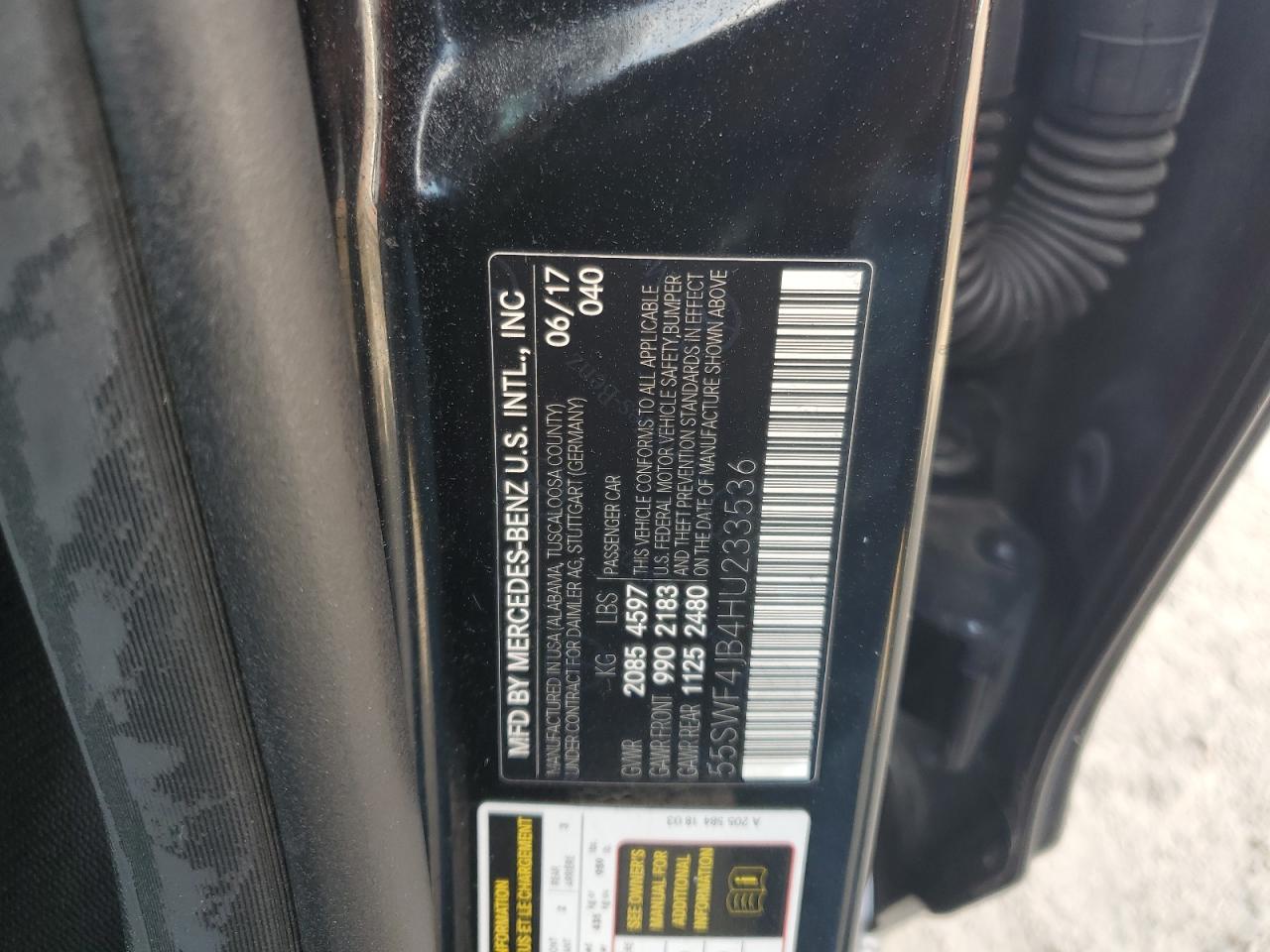 2017 MERCEDES-BENZ C-CLASS - 55SWF4JB4HU233536, колір - Чорний, 2.0, Бензин, Задній привід із США