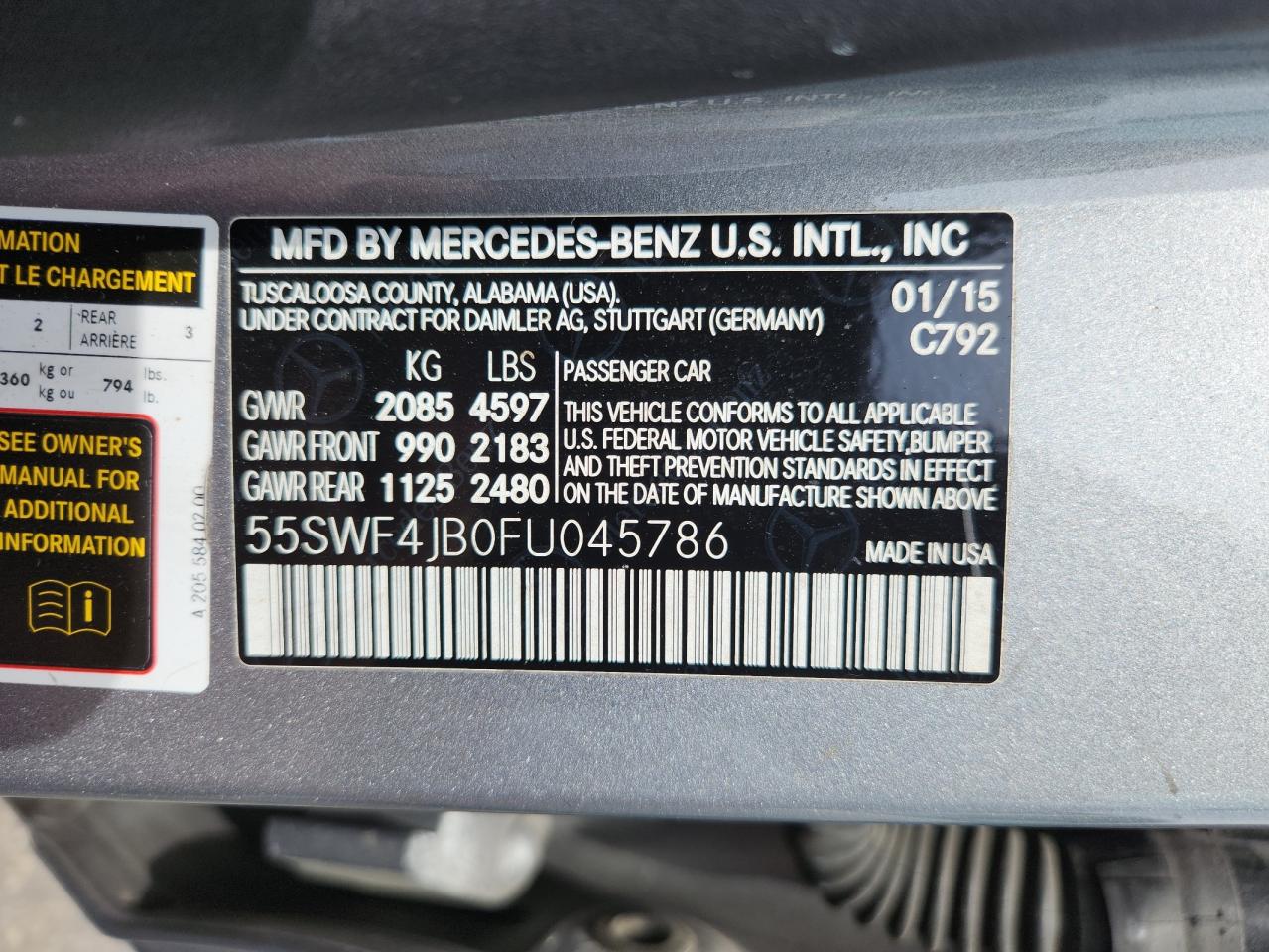 2015 MERCEDES-BENZ C-CLASS - 55SWF4JB0FU045786, колір - Срібний, 2.0, Бензин, Задній привід із США