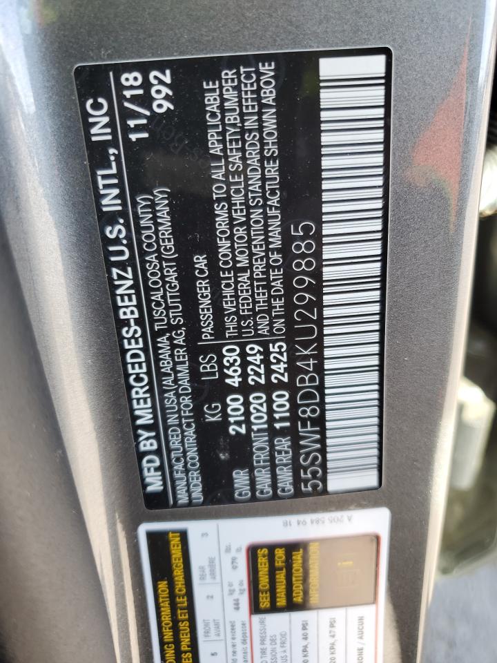 2019 MERCEDES-BENZ C-CLASS - 55SWF8DB4KU299885, колір - Сірий, 2.0, Бензин, Задній привід із США