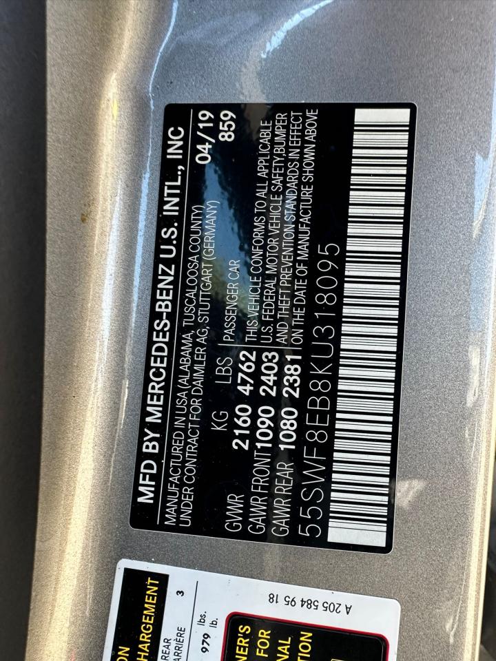 2019 MERCEDES-BENZ C-CLASS - 55SWF8EB8KU318095, колір - Срібний, 2.0, Бензин, Повний привід із США