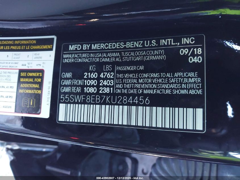 2019 MERCEDES-BENZ C-CLASS - 55SWF8EB7KU284456, колір - Чорний, 2.0, Бензин, Повний привід із США