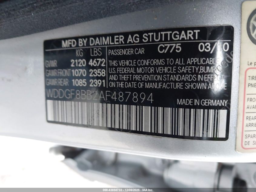 2010 MERCEDES-BENZ C-CLASS - WDDGF8BB2AF487894, колір - Срібний, 3.0, Бензин, Повний привід із США