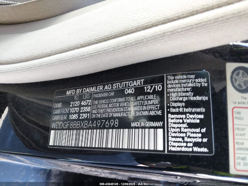 Колір ЧорнийЦиліндри 6Привід Повний привідVIN WDDGF8BBXBA497698Стан СтаціонарноУшкодження Передня і задня