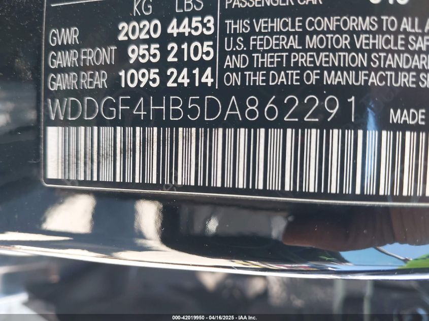 Колір ЧорнийЦиліндри 4Привід Задній привідVIN WDDGF4HB5DA862291Стан СтаціонарноУшкодження Незначні
